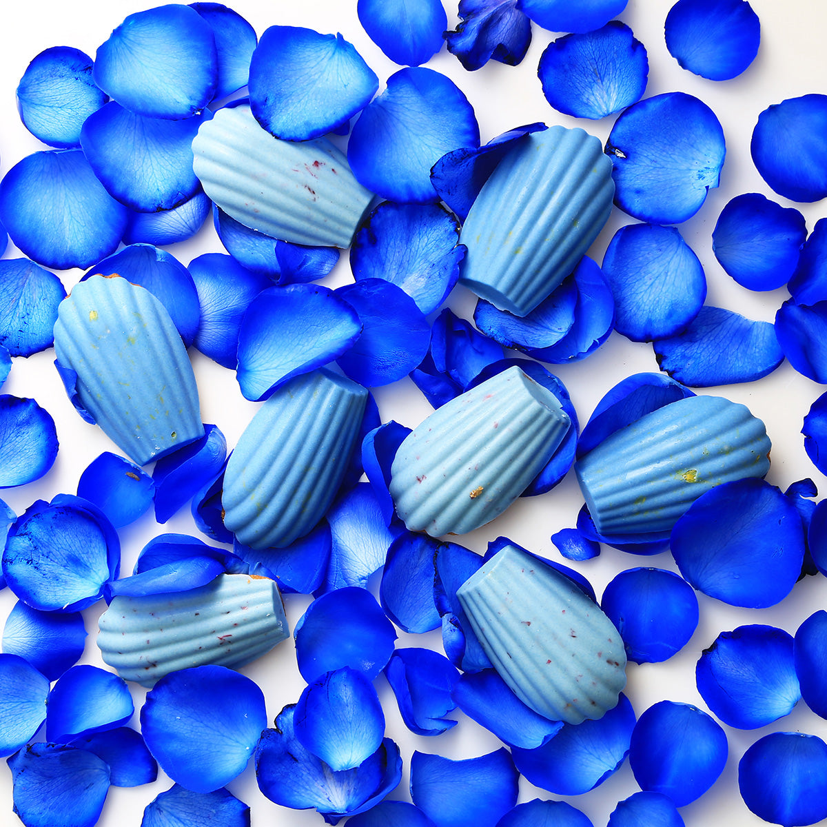 空色とネモフィラのブルーに舞う蝶をイメージした、幻想的な彩りのペタルチョコレート。