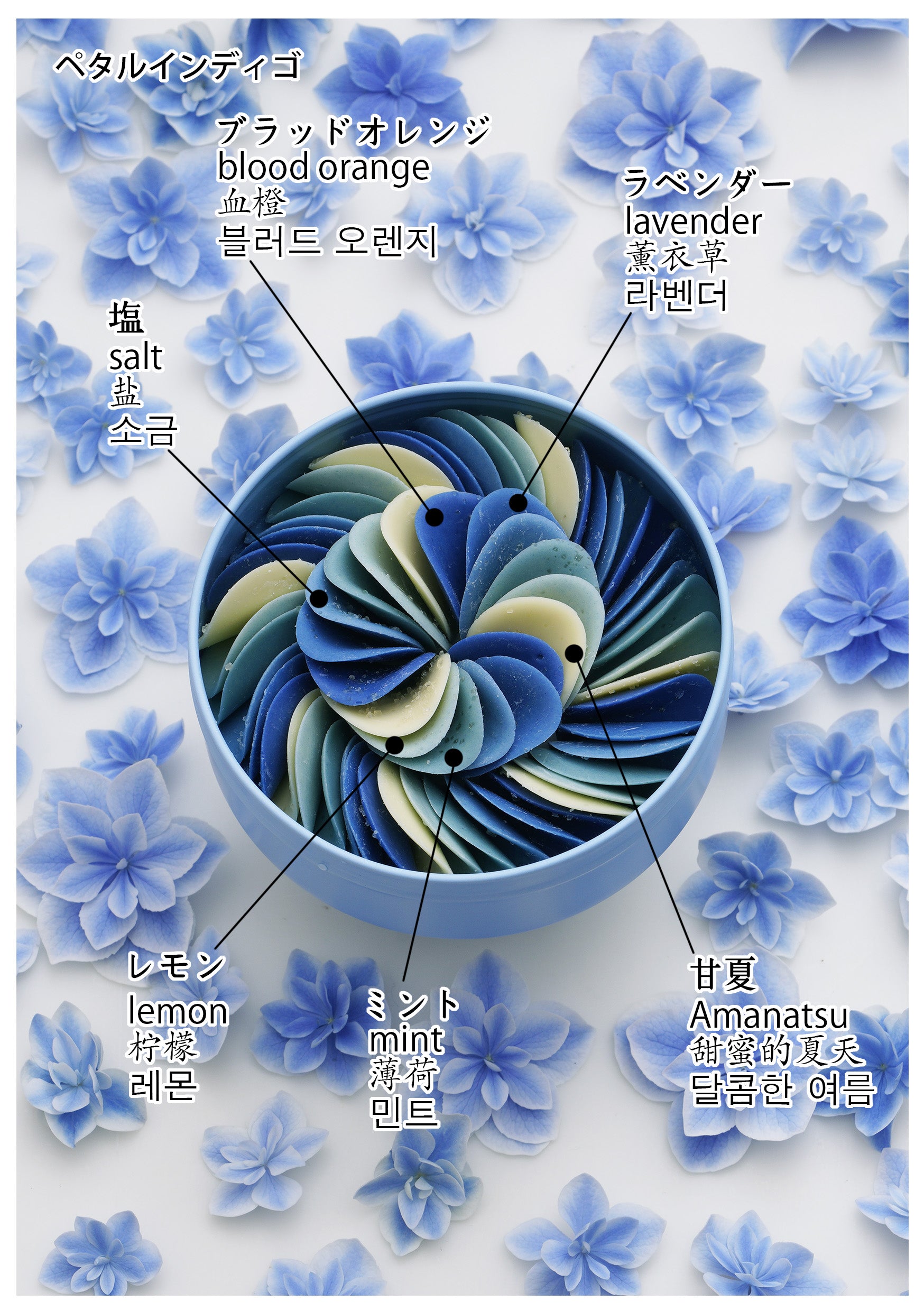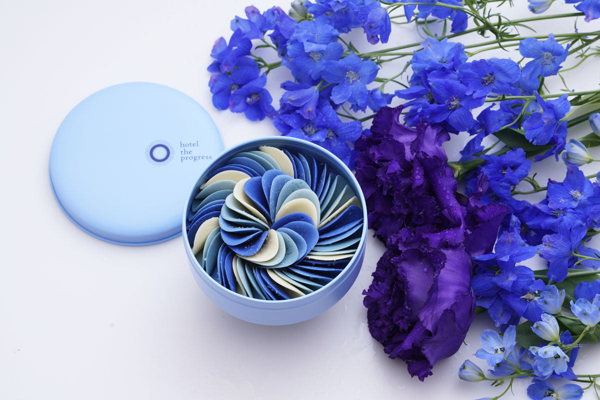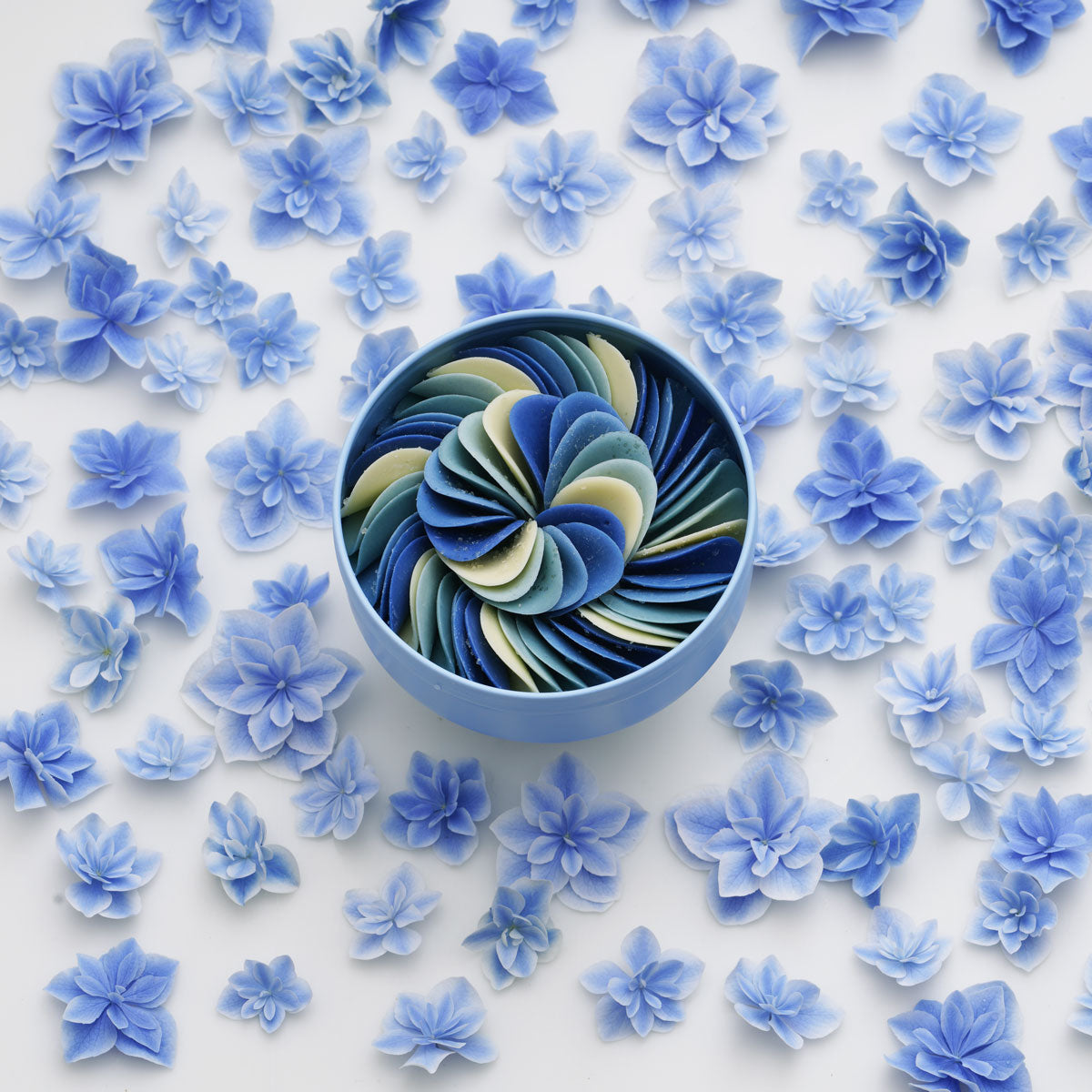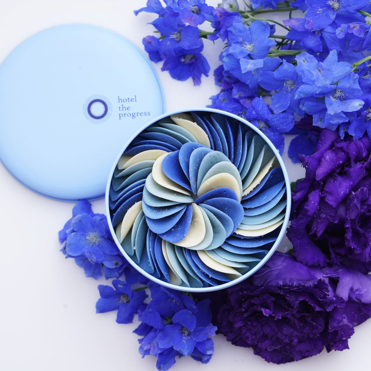 インディゴブルーの花びらが舞う、見た目にも美しいペタルチョコレート。